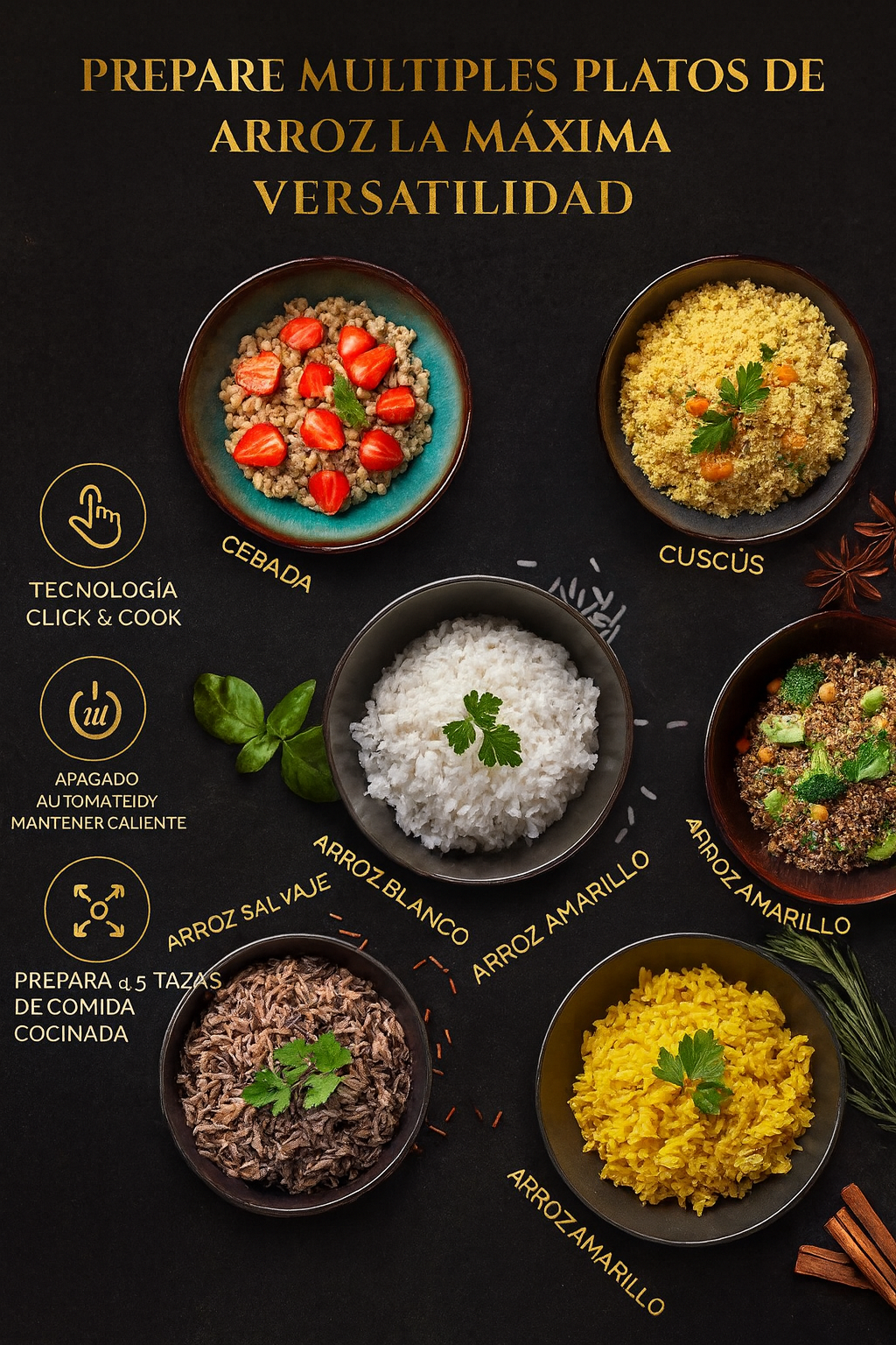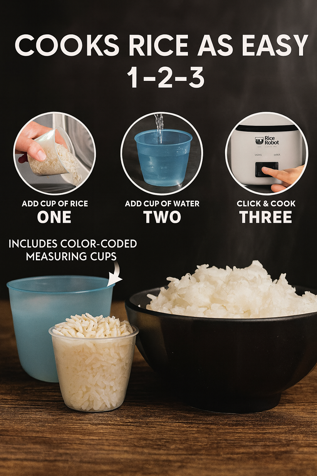 Enjoy effortless rice dishes with our intuitive design, making cooking as easy as 1-2-3.