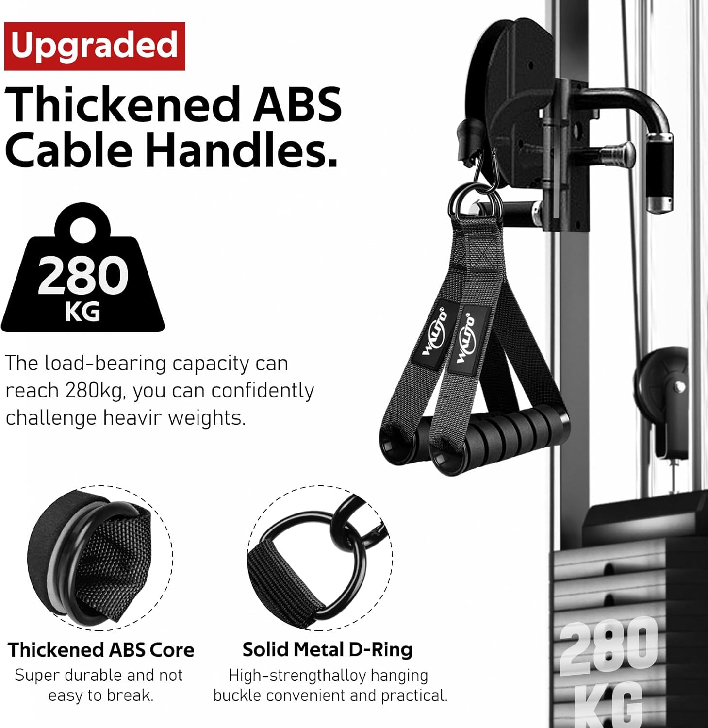 - Ultra Heavy Duty Exercise Handles – Engineered with unwavering strength and durability, our cable handles are built to withstand extremely 600lbs weights. Crafted from strong braided nylon straps, they are built to withstand rigorous workouts and offer long-lasting performance. Solid D-ring handles can maximize your workout performance, allowing you to unleash your full potential!