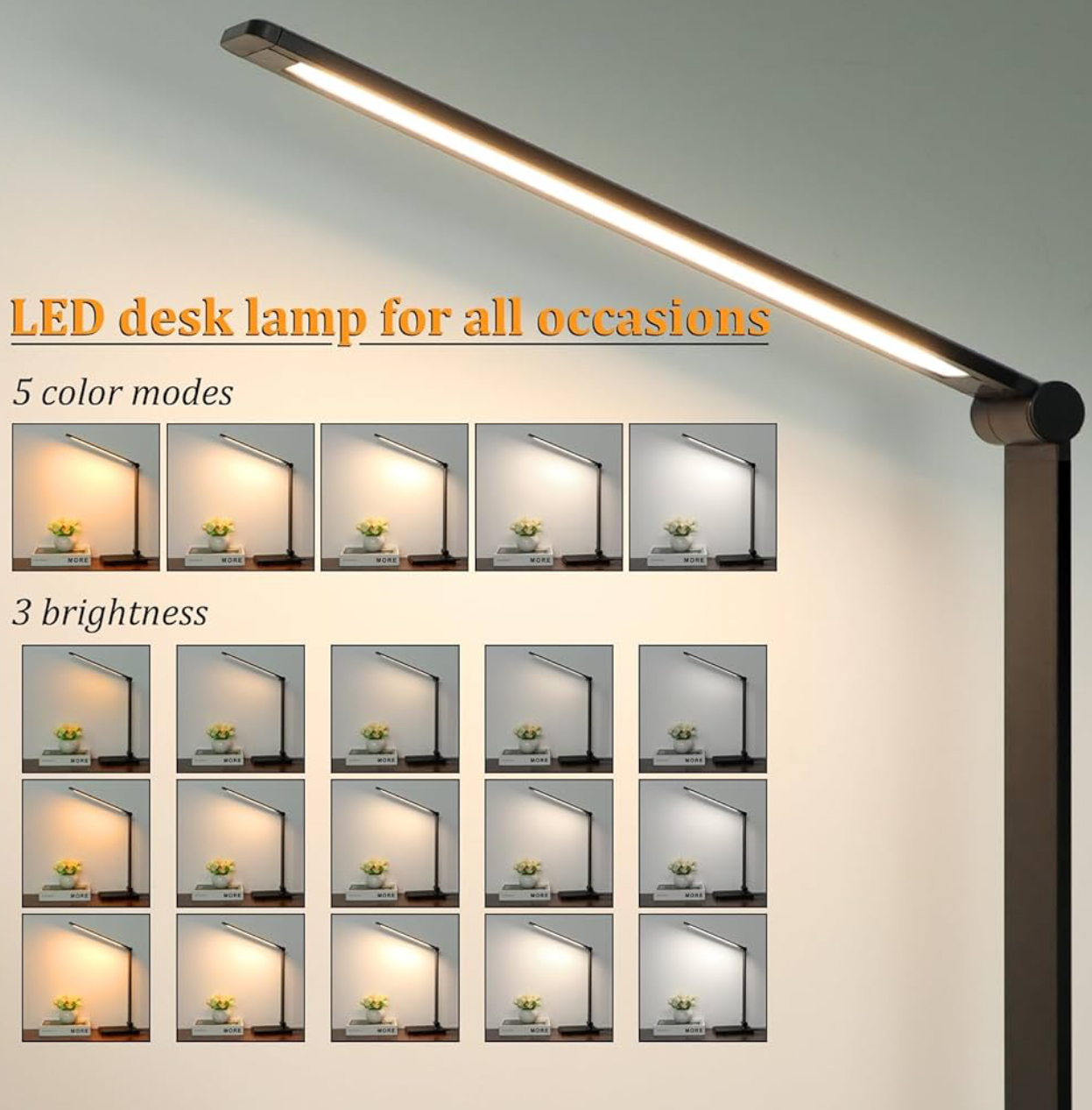 - Touch control dimmable desk lamp , the LED desk light has 5 light colors and 3 brightness levels. You can easily choose a variety of lights for painting, reading, writing, crafts, nail charms, kindle reading lighting needs. easily adjust the brightness by touch. Cool white lighting great suit for working, studying, reading.